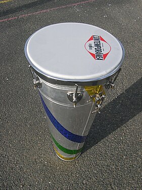 Round idiophone originally fashioned from a propane tank.
